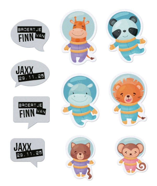 Dit kaartje is gedrukt op metallic papier. Wordt met een zilveren splitpen samengesteld. Alle applicaties worden meegeleverd.