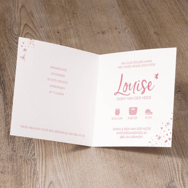 Geboortekaartje - Luxe roségoudfolie met vlindertjes