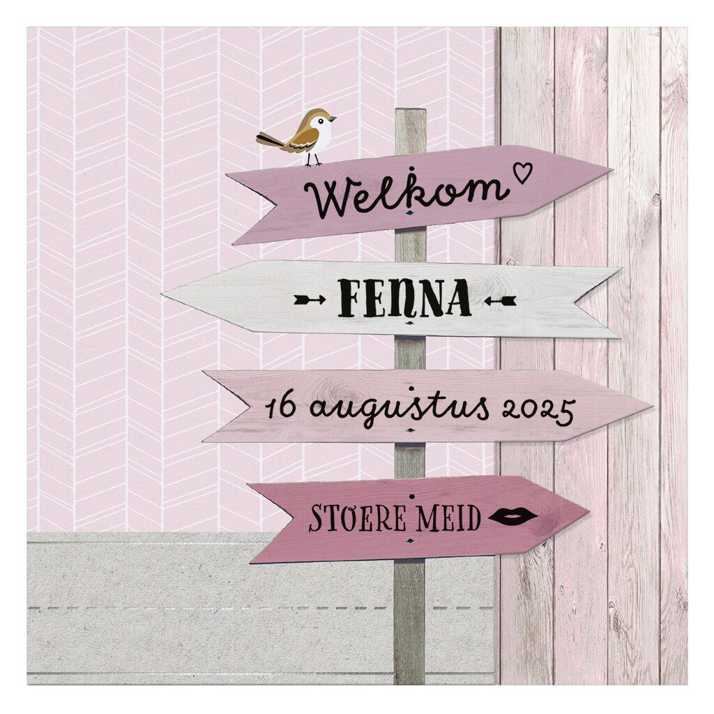Geboortekaartje - Roze wegwijzers
