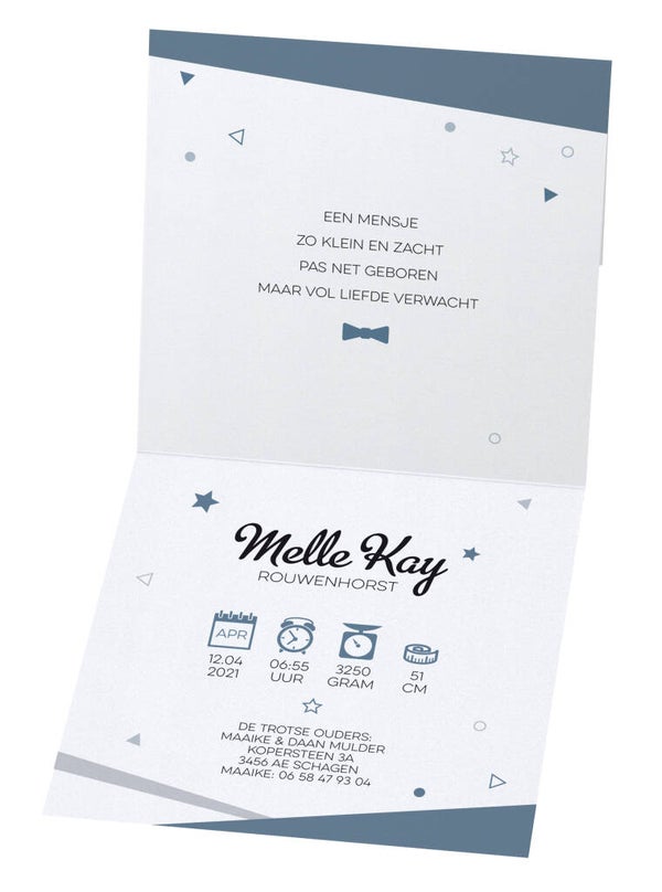 Dit geboortekaartje is gedrukt op metallic papier.