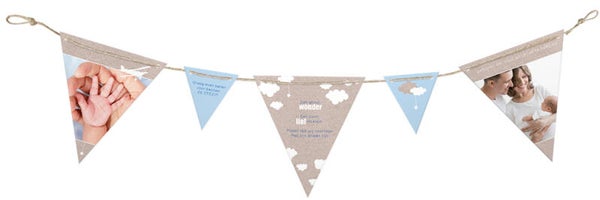 Kondig de geboorte van jullie baby aan met dit originele geboortekaartje: een geheel naar wens aanpasbare vlaggenlijn.