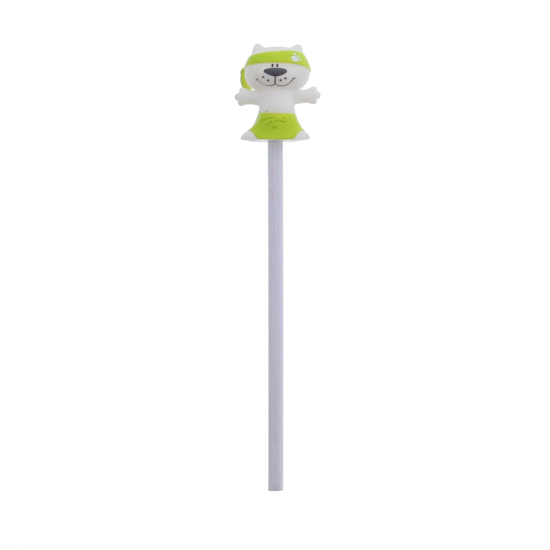 Lemon kleurige tijger uit kunststof op een wit houten potlood.