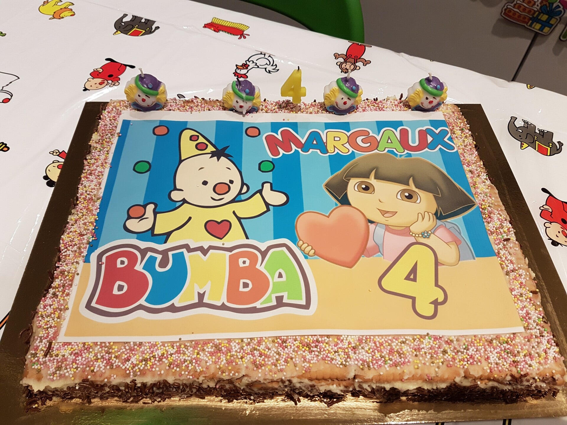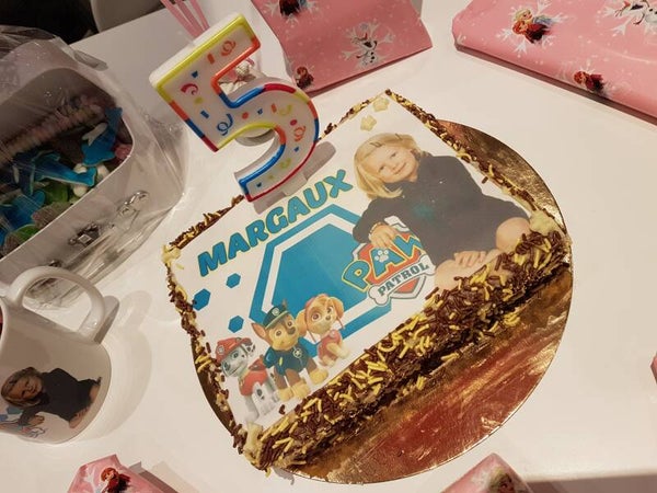 Gemetste koek met petit beure koekjes, botercreme en eetbare print naar keuze.